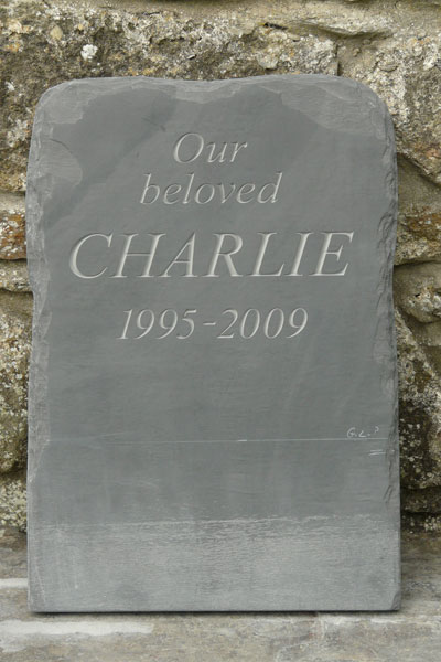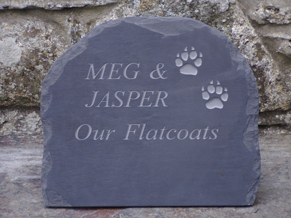 Our pet and animal memorials are designed and made individually - you can choose slate shape, fonts, layouts and artwork .We recommend that the lettering for memorial stones and plaques is neither painted nor gilded...more info